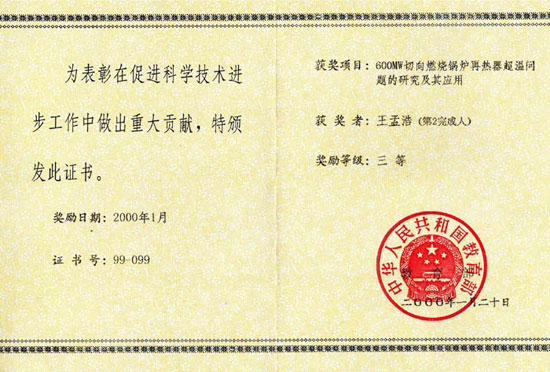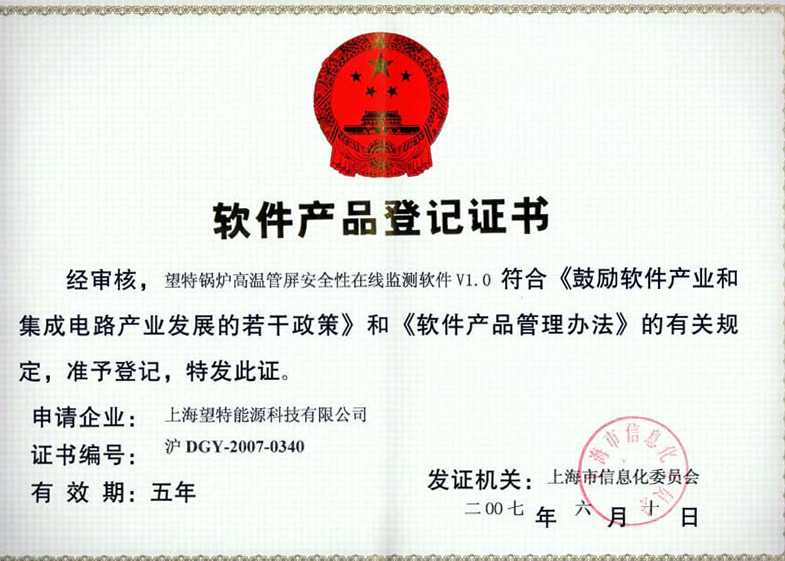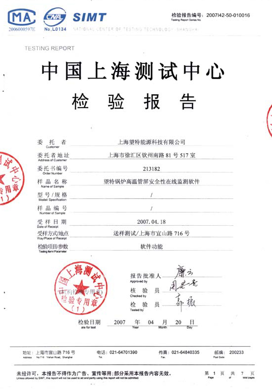 減小鍋爐熱偏差的蒸汽流量 適配器證書(shū) |