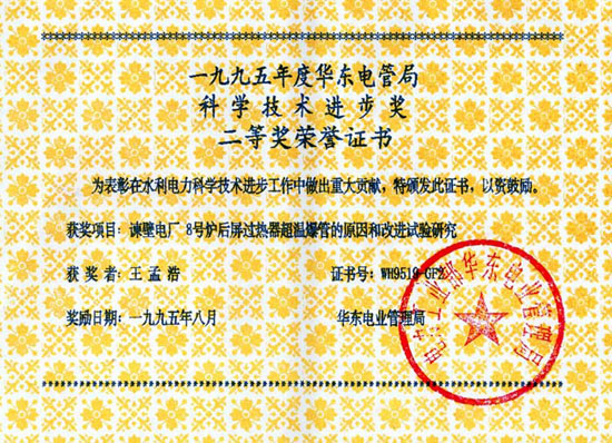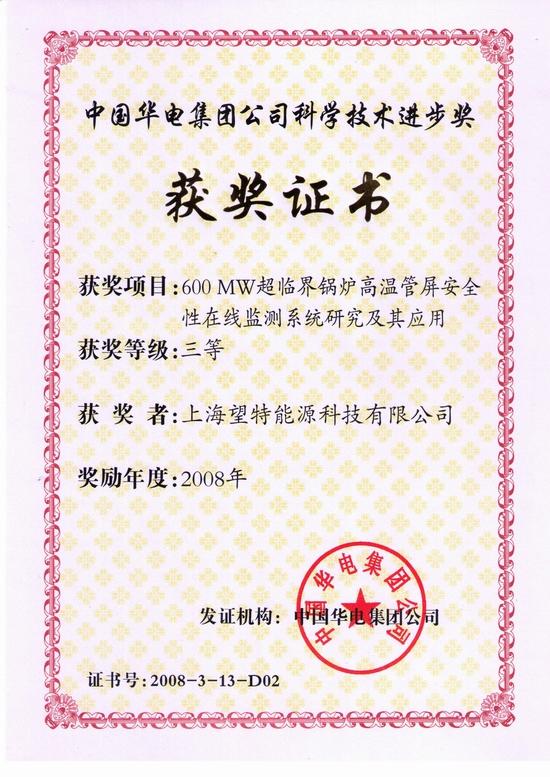 華電集團(tuán) 科學(xué)技術(shù)進(jìn)步獎(jiǎng)證書(shū) |