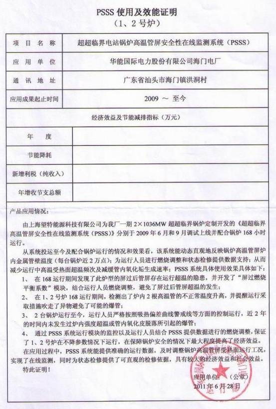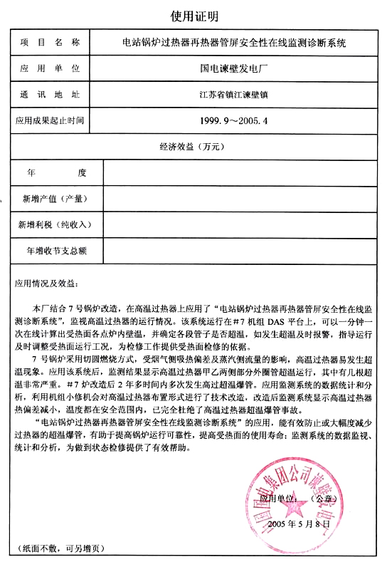 國(guó)電諫壁7號(hào)爐 應(yīng)用證明 |