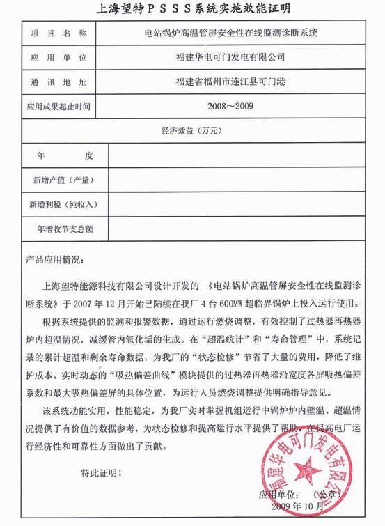 華電可門(mén)電廠 應(yīng)用證明 |