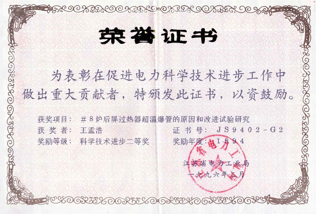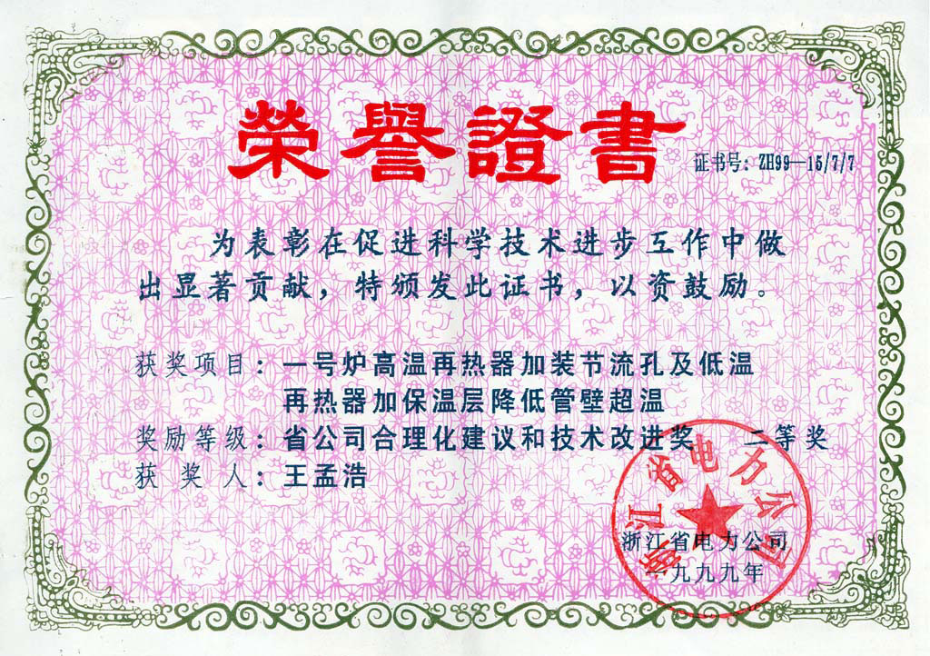 及改進(jìn)二等獎(jiǎng)證書(shū)